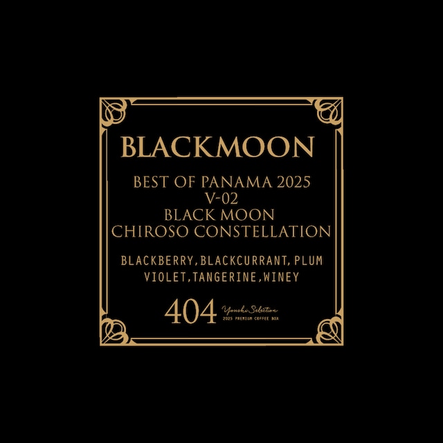 Best of Panama 2025 V-02 Black Moon Chiroso Constellation 14g Black berry,Black currant,Plum,Violet,Tangerine,Winey Best of Panama Varietal 部門2位のロットです。 昨年度はV-01に輝いたBlack Moon農園。今年は惜しくも2位でしたが昨年以上に濃厚さが増しています。今年の印象は一言で言うと重厚。 凝縮された味わいと圧倒的コンプレックス!黒真珠の色を思わせるような味わいです。 美しく優美なチロソ... Country: Panama Area: Alto Quiel Farm: Black Moon Altitude: 1700m Cultivar: Chiroso Method: Anaerobic Natural